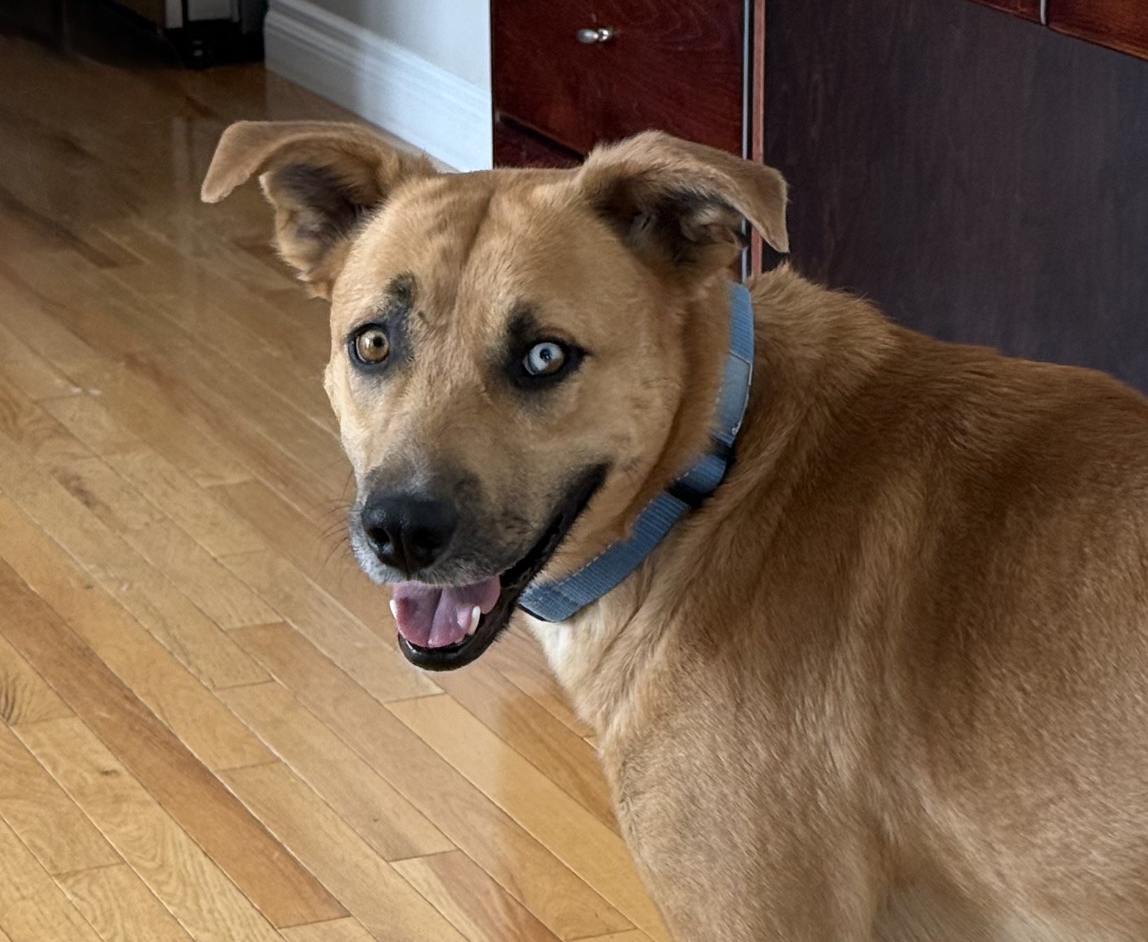 Barb is a super cute, lovable girl with a big heart and a gentle soul. She’s affectionate, sweet, and loves bonding closely with her people. Barb would thrive with experienced dog owners and a confident dog friend who can help continue building her confidence and support her as she grows into her best self. She’s looking for a calm, child-free home, as little ones can be a bit scary for her, and she feels safest in a quieter environment. With patience, consistency, and lots of love, Barb will be a wonderfully loyal companion who’s ready to soak up all the affection you have to give.