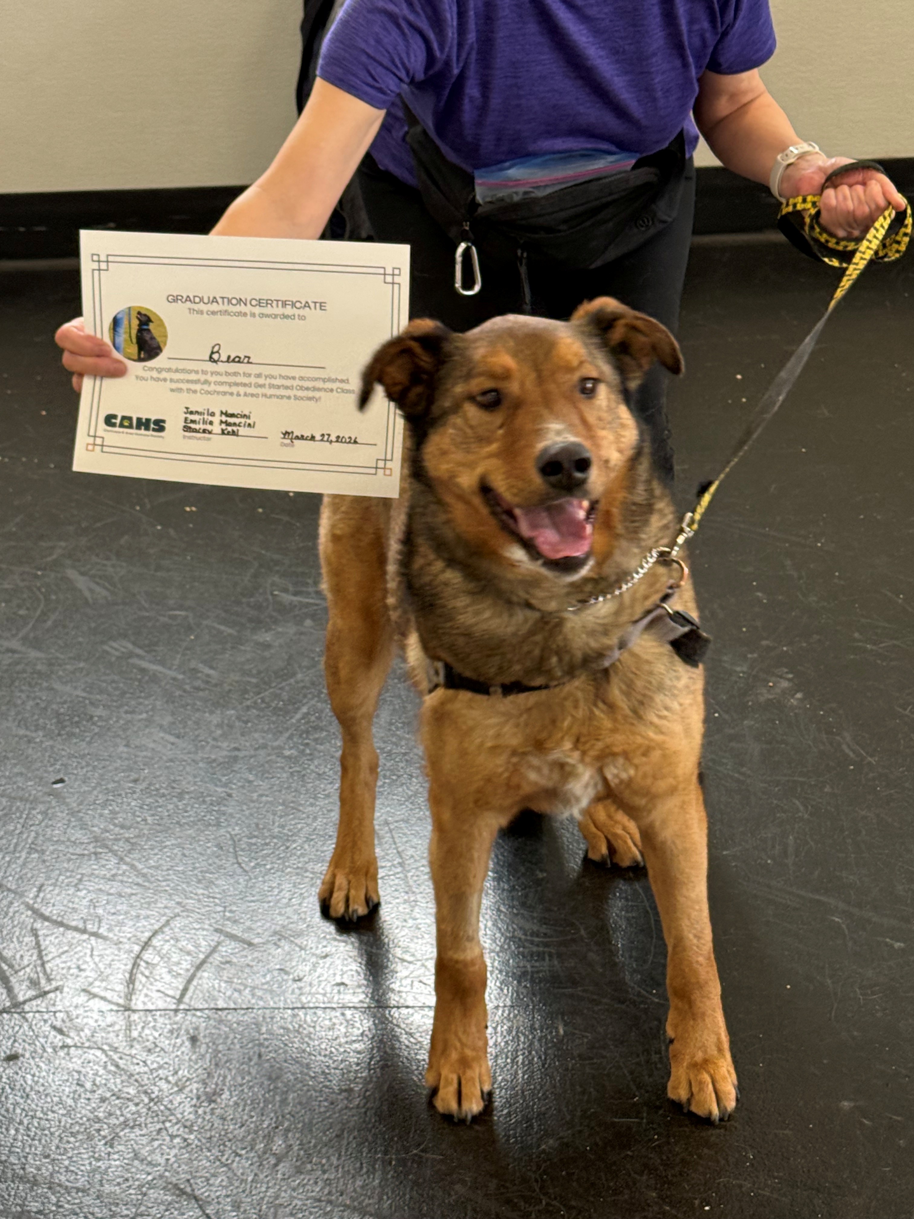 Bear graduated from our Shelter Get Started Obedience with a volunteer! Ask us what he learned!
