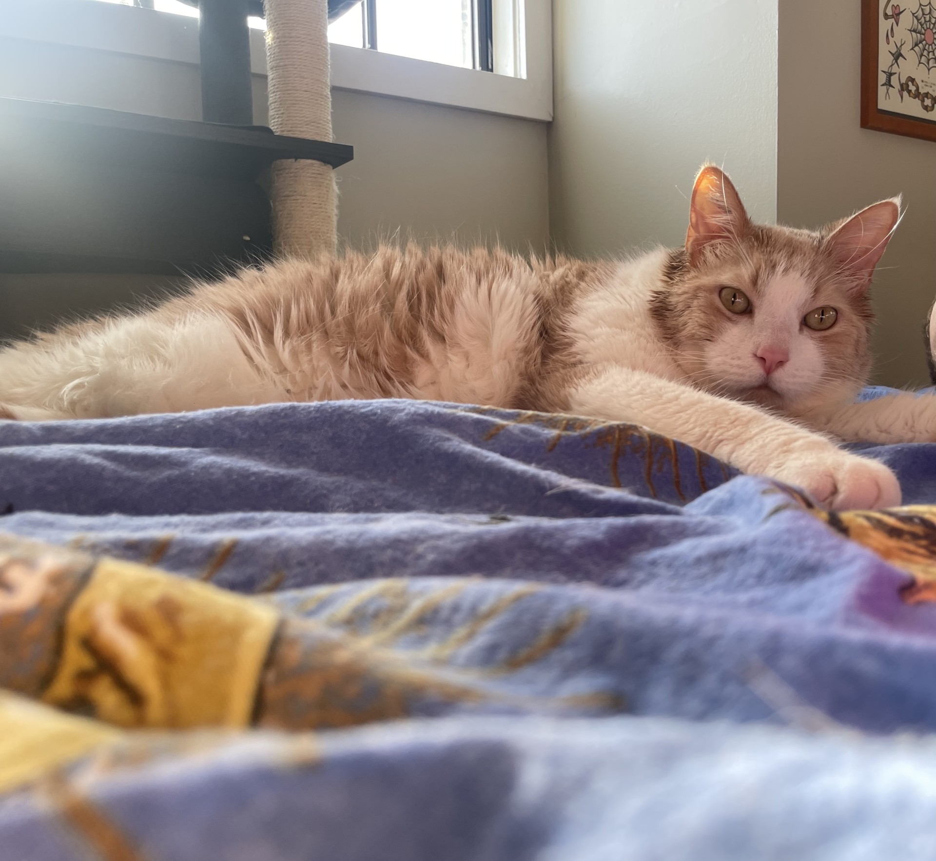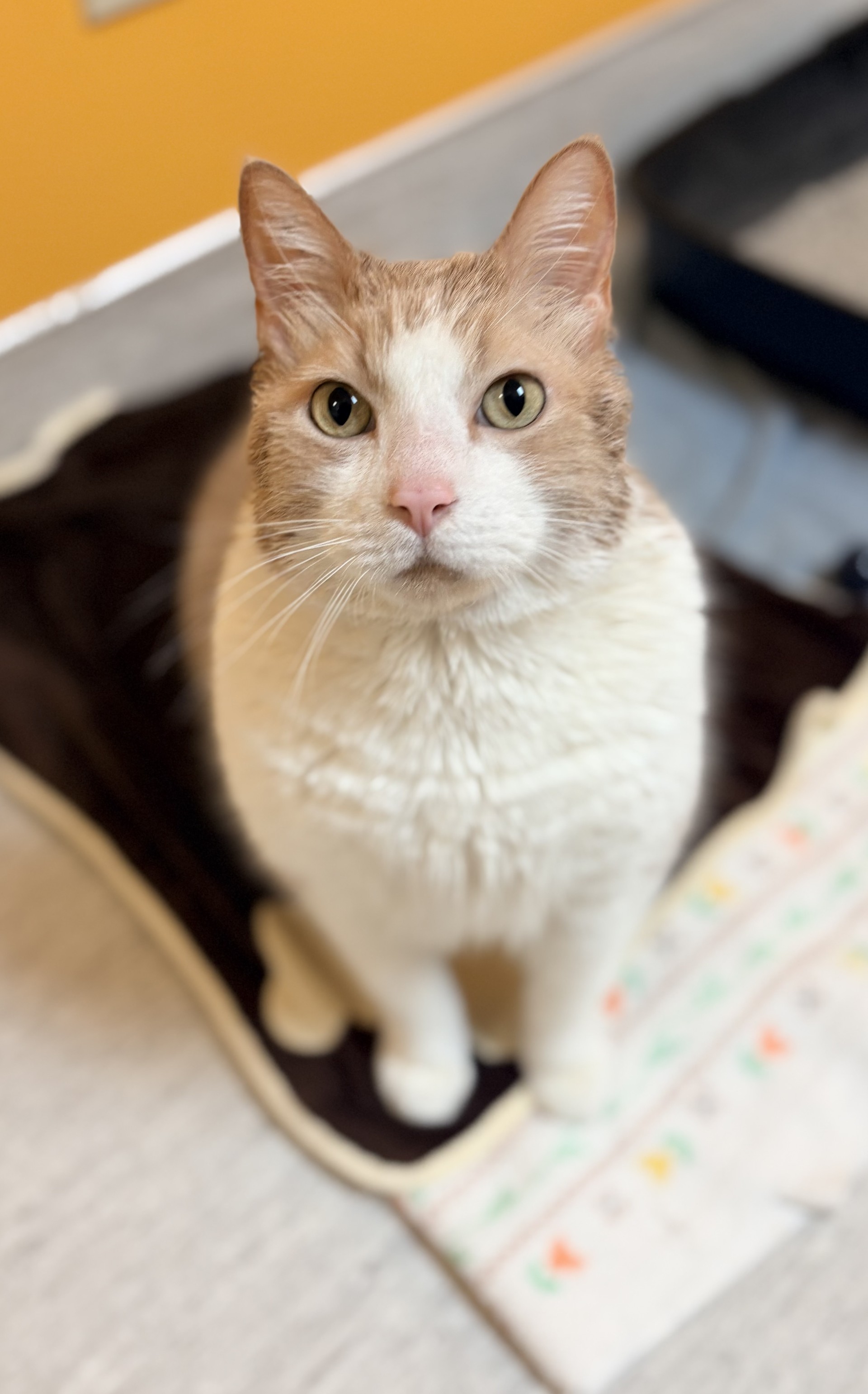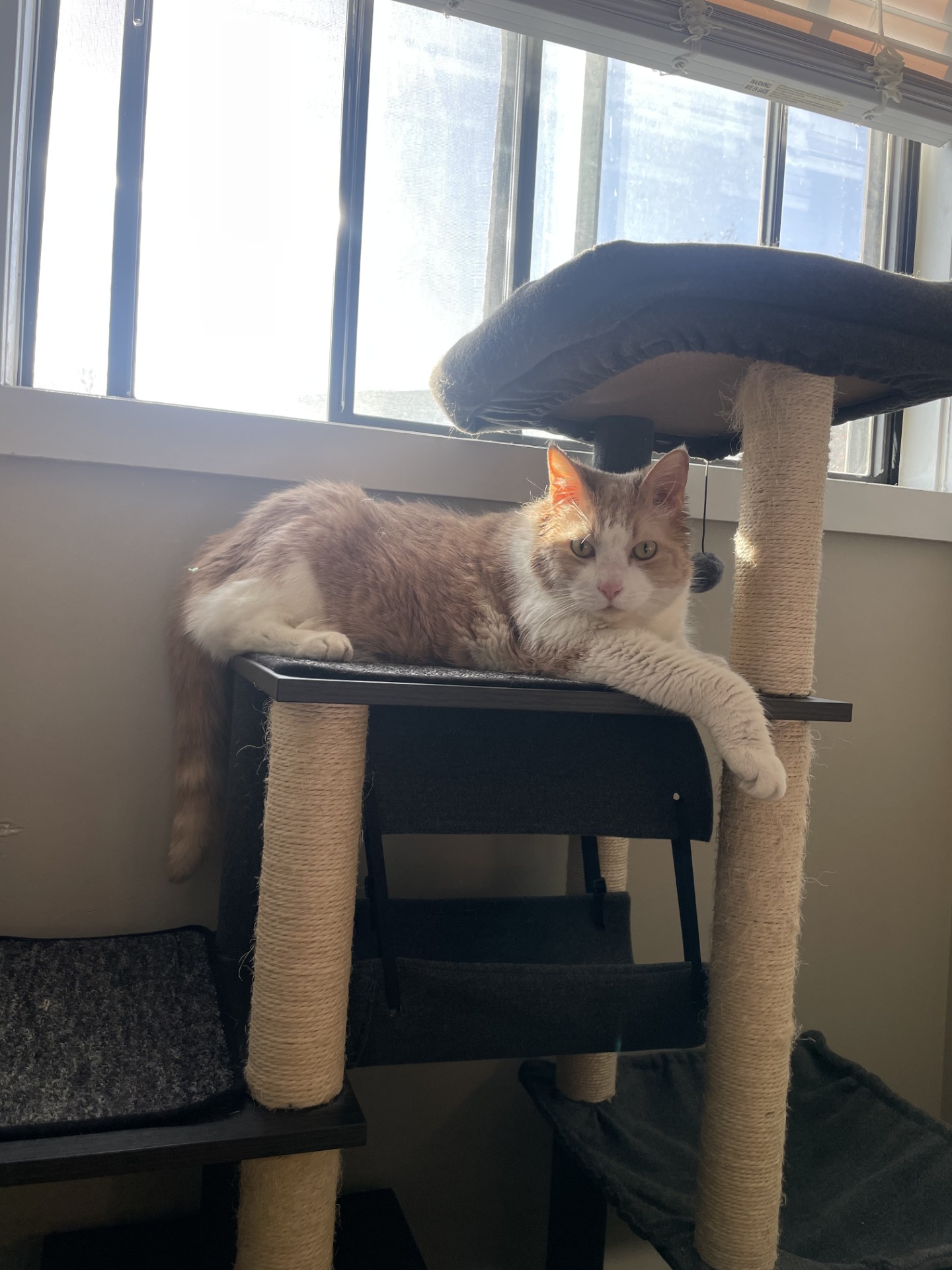 Darren is a total people-lover and a certified purr machine who’s happiest when he’s soaking up attention. He adores his humans and likes to show his appreciation with small love nips—his own special way of saying “I adore you.” Because of this, Darren is best suited to a home with children aged 15 and up as the small kids don't get it! He’s also on an important weight-loss journey, so a family committed to continuing his healthy routine is a must. If you’re looking for an affectionate, playful and chatty companion with a big heart and even bigger purrs, Darren is ready to meet you!