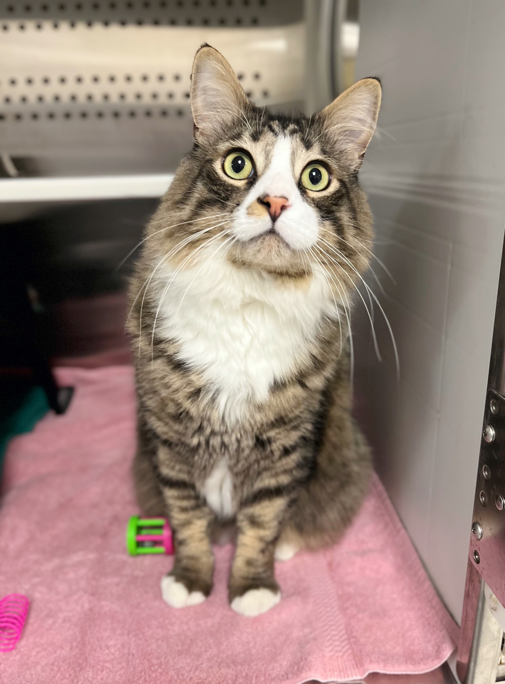 Gus is looking for a loving family so he can enjoy his forever home with them for years to come. If that's you, then make sure you have a brush for Gus because he has a glorious fur coat that you will need to attend to! He's a laid-back guy that loves companionship, and he is happy to help you out in the office by warming your keyboard or making guest appearances in your zoom calls. Gus has previously lived with older children, other cats and small dogs, and probably wouldn't mind sharing his new home! It would be great if his cat tree is near a sunny window for bird viewing and a catnap or two. This super handsome guy is sure to get scooped up quick, you can't resist his sweet face and luxuriously soft fur!