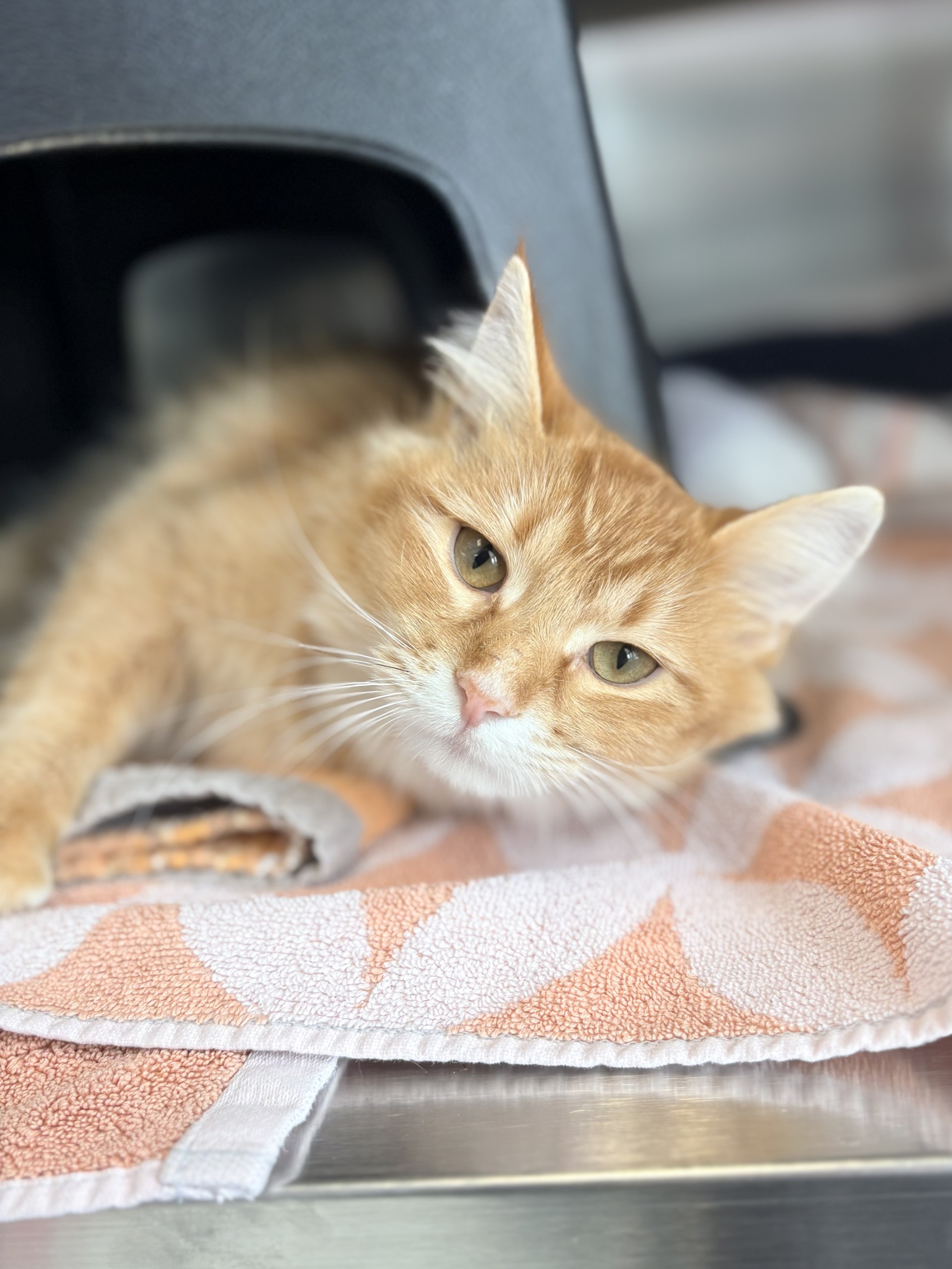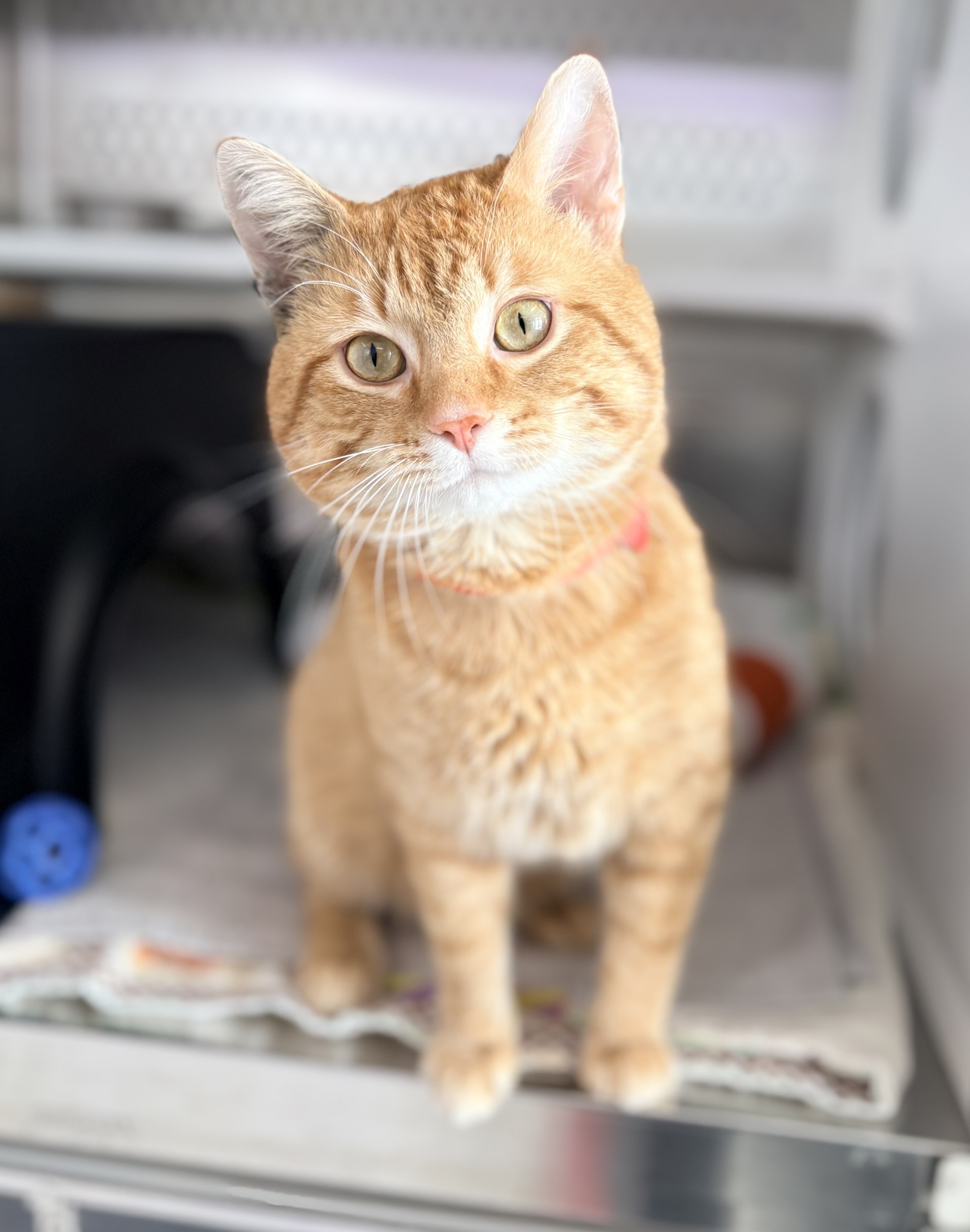 Joy is a shy, gentle girl who keeps to herself at the shelter, but we believe she’ll truly blossom in a quiet home, most likely with a confident cat friend to guide her. She’s looking for patient people who will give her the time she needs to feel safe. Once she’s comfortable, her sweet personality shines through, you’ll often hear her soft but loud purring before you even see her, especially when she’s enjoying her favorite chin scratches!
