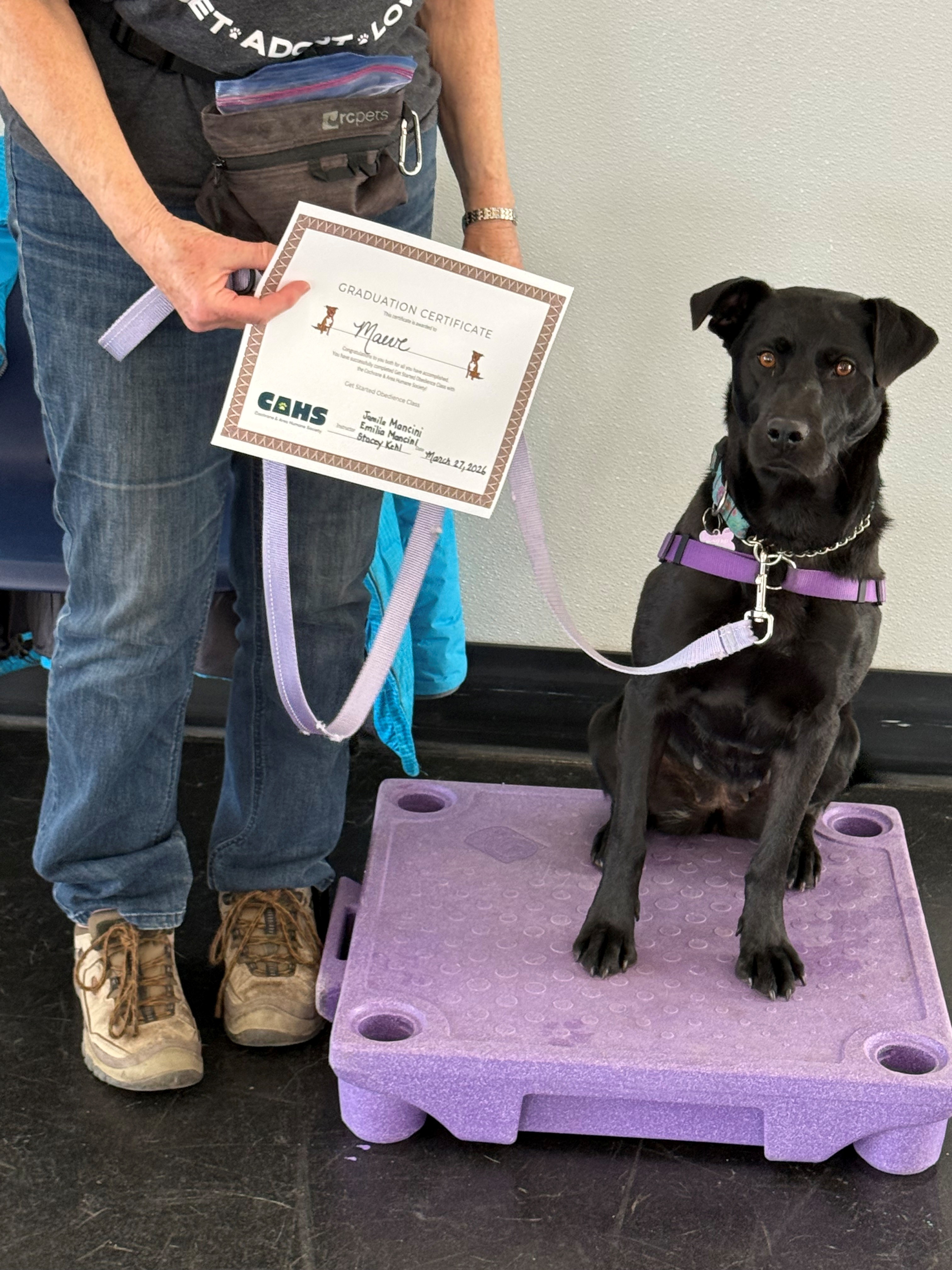 Maeve graduated our Shelter Dog Obedience Program with a Volunteer! Ask our staff what she learned!