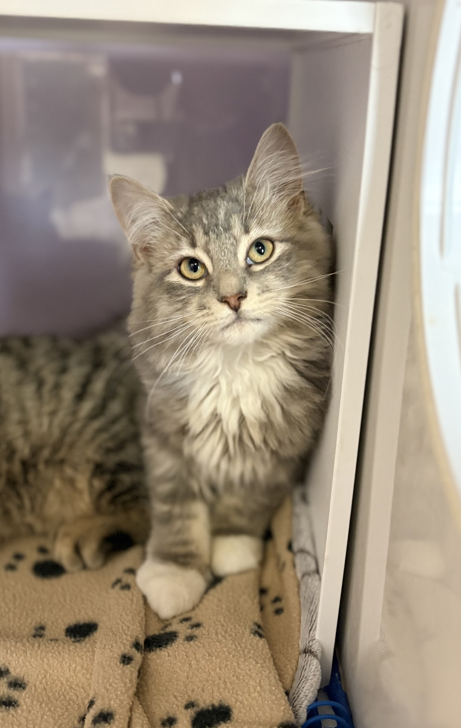 Pashmina is a super sweet, gentle girl with a calm and quiet nature. She can be a little shy at first and prefers a peaceful home where patient, understanding people can give her the time and space she needs to feel safe. With kindness and consistency, she slowly begins to come out of her shell. Once Pashmina learns to trust you, she reveals her favorite thing soft chin scratches that earn the quietest, most content purrs. She’s the kind of cat who forms deep bonds and brings a soothing presence to a home, making her a perfect companion for someone who appreciates the beauty of a gentle soul.