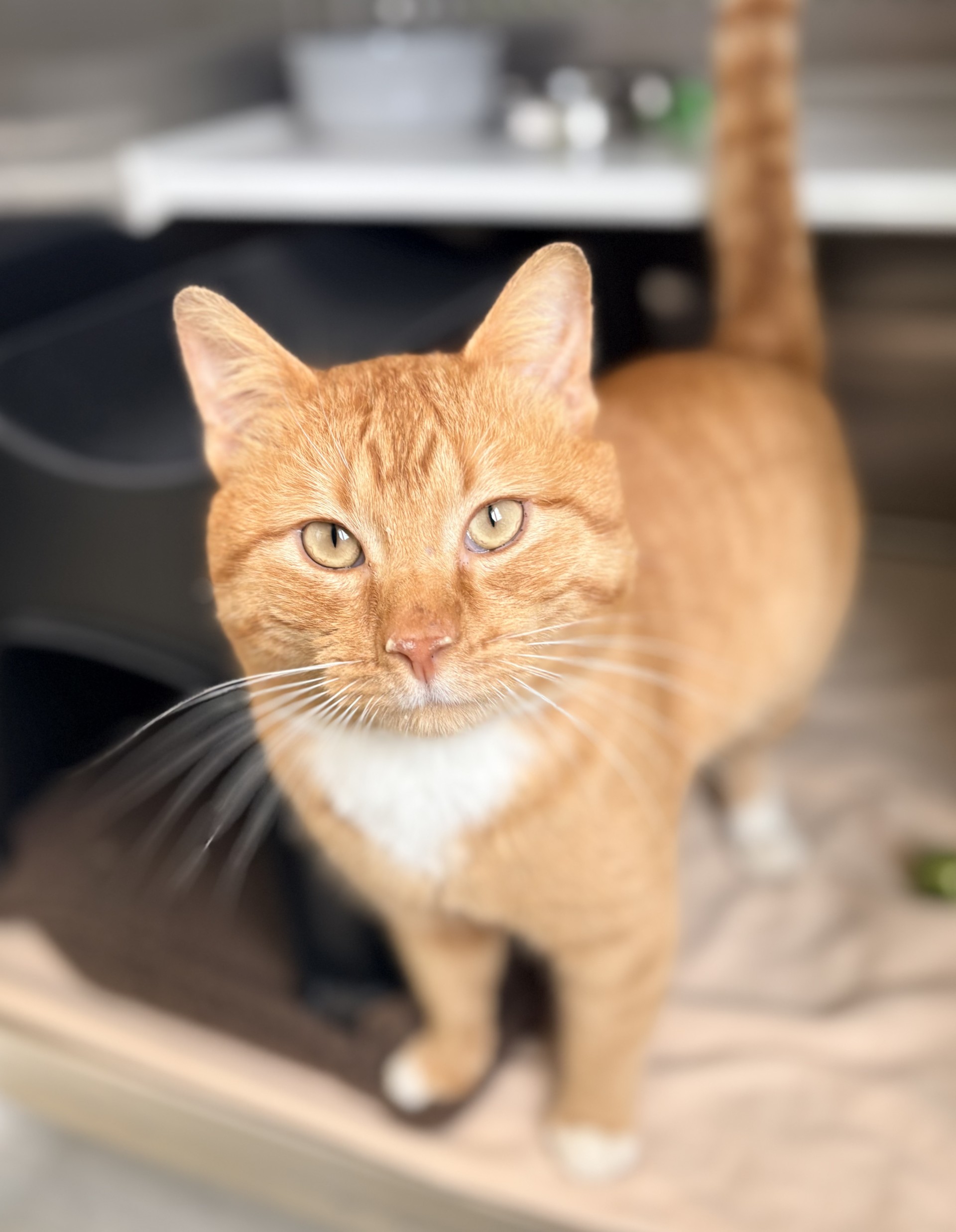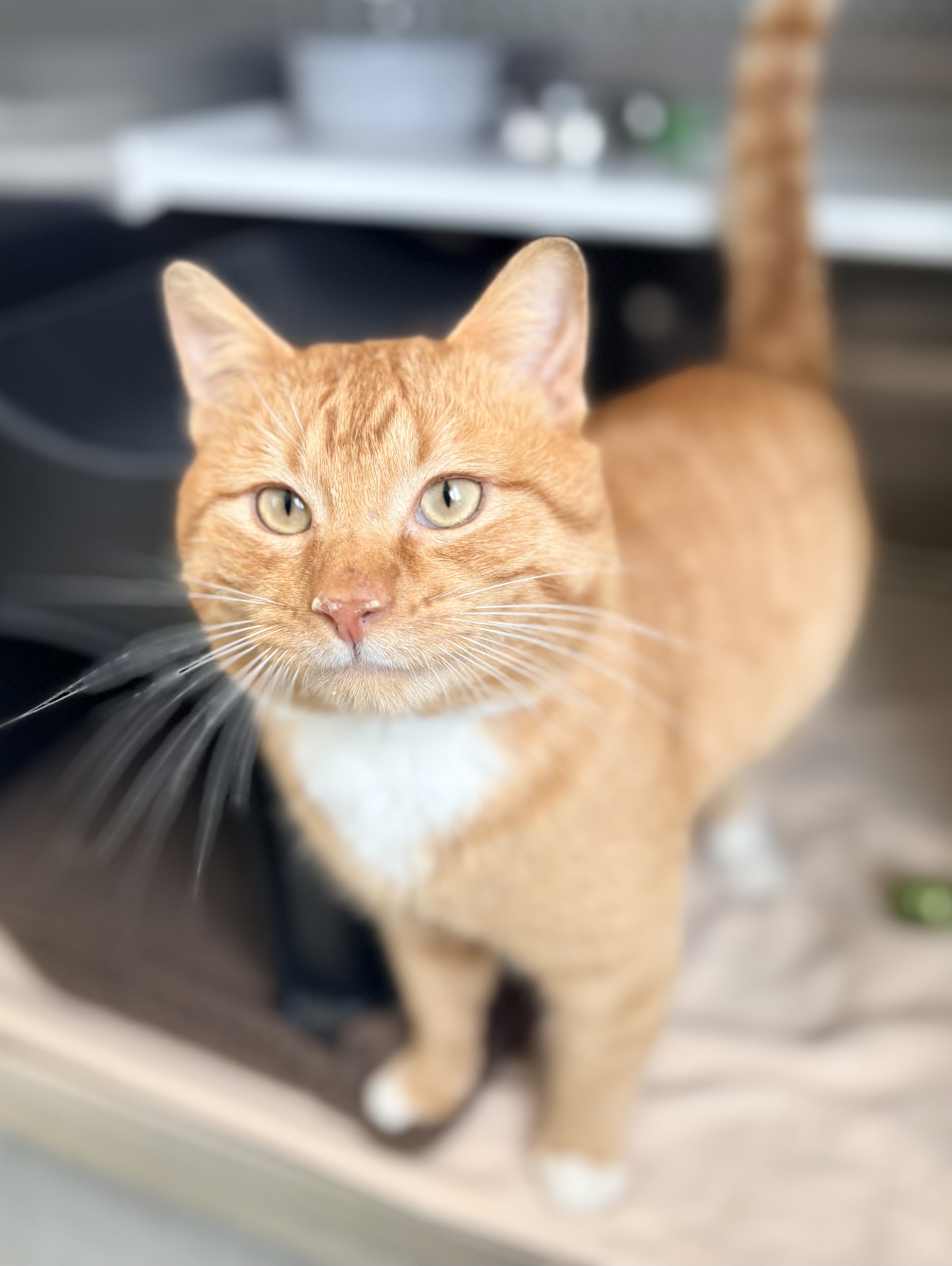 Patrick is a classic ginger cat with a big voice and an even bigger personality. This super chatty guy loves being the center of your world and will happily keep you company with his constant conversations. Full of life and enthusiasm, Patrick brings joy wherever he goes. He’d thrive in a loving home where he can shower his people with as much affection as he gets in return.