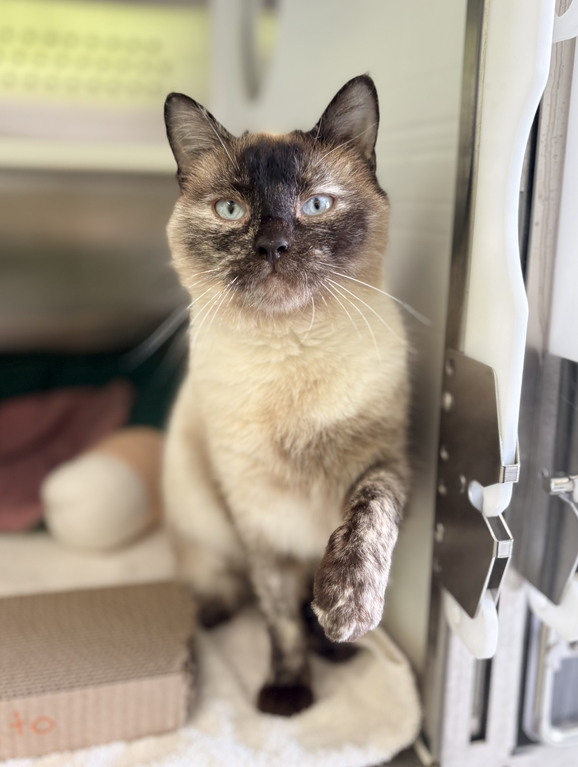 Don’t let the name fool you, Potato is anything but lazy. This lively girl is full of energy and absolutely loves playtime, especially when it involves her favorite spring toys and ping pong balls. Put her on a hard floor and she’ll happily entertain herself, batting and chasing her toys like a pro. While she has a playful, active side, Potato would thrive in a quieter home where she can feel relaxed and comfortable. Give her a few sunny windows to watch the world go by and a stash of her favorite toys, and she’ll be in her element. With the right space, Potato is the perfect mix of fun, independence, and charm.