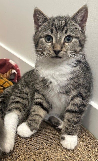 Whiskey is a shy little kitten who’s still learning that the world can be a kind and gentle place. He may take some time to come out of his shell, but with patience, understanding, and a calm environment, his true sweet nature is sure to shine through. Those soft eyes and tiny mannerisms already hint at just how special he is. Whiskey would do best with experienced cat owners who can give him the reassurance he needs, along with a friendly feline companion to help show him the ropes. In a quiet, loving home, he’s bound to blossom into the sweetest boy in no time and reward you with trust, affection, and plenty of heart-melting moments!